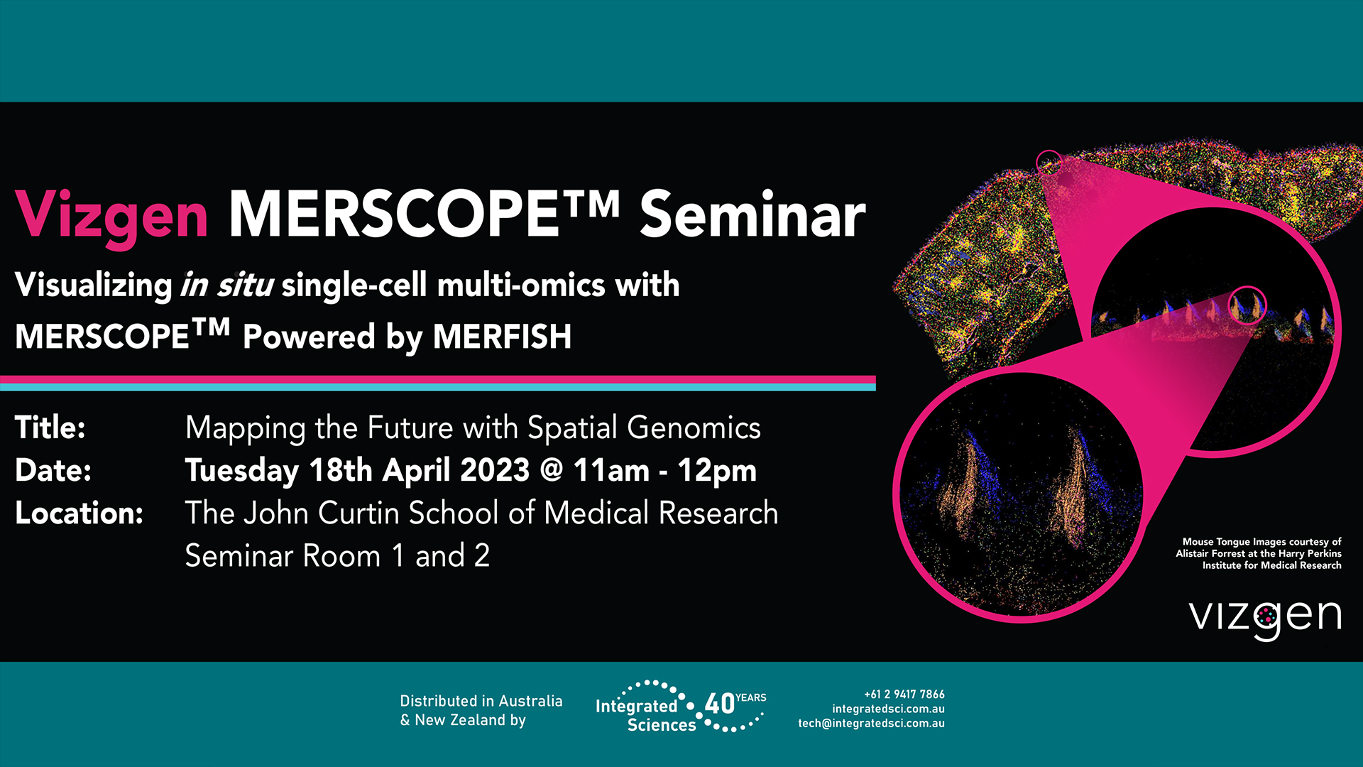 Luan Nguyen is a seasoned genomics expert with 17 years of experience in the life sciences industry. He specializes in a range of genomics technologies, including microarrays, next-generation sequencing, and long-read sequencing. Currently serving as Business Manager APAC at Vizgen, he is playing a key role in promoting the adoption of spatial genomics in the Asia-Pacific region. He has previously held key roles at 10xGenomics, Pacific Biosciences, Affymetrix, and Bio-Rad. Mr Nguyen is a respected leader in the industry and has presented at multiple scientific conferences and events. Attendees of the upcoming “Mapping the Future with Spatial Genomics” seminar at ANU can expect to gain valuable insights from Luan’s presentation on the applications of spatial genomics in research.