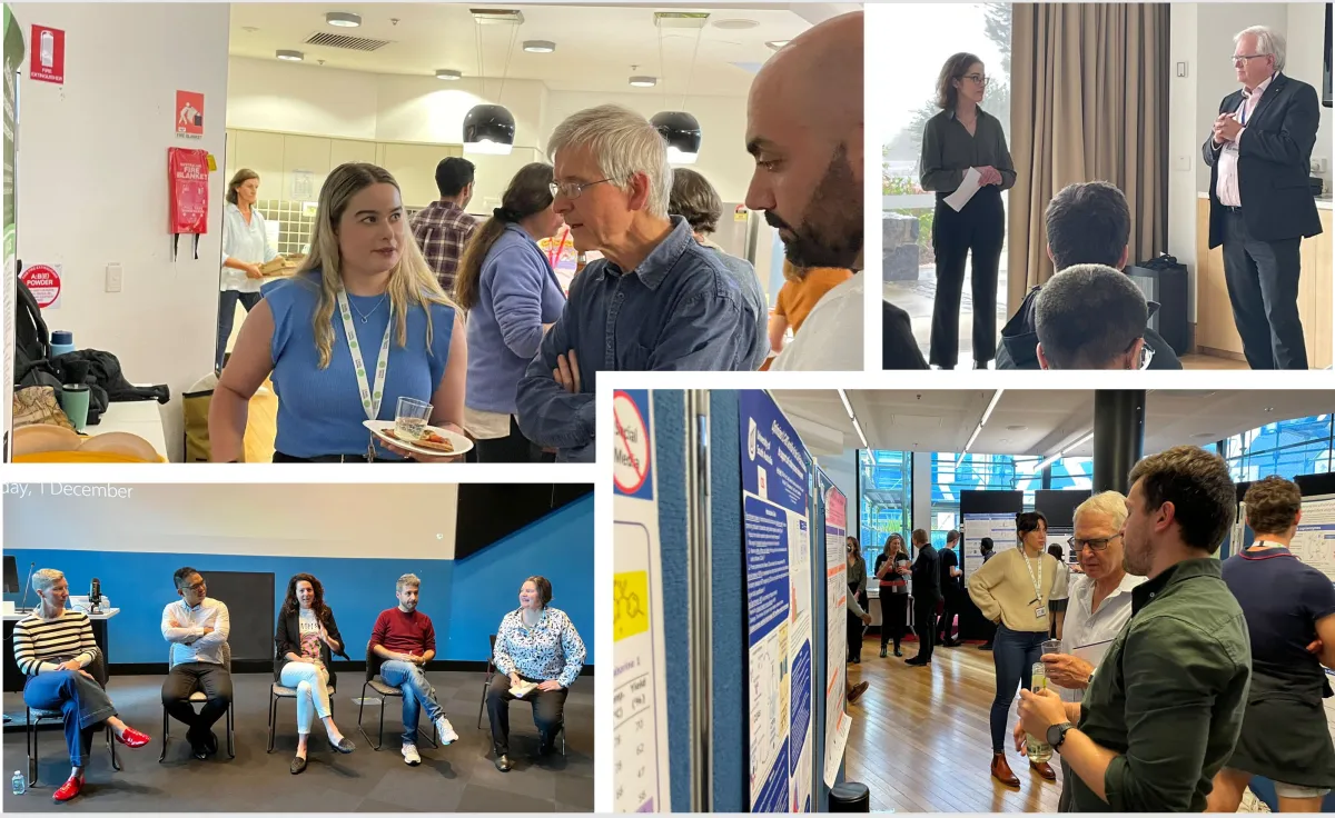 Top Left, Bottom Right: JCSMR academics join the students for a vigorous poster discussion. Top Right: Q&A discussion with Prof. Brian Schmidt, led by Dr Teresa Bonello. Bottom Left: Exploring key concepts around DEI - conversation led by Professor Elizabeth Gardiner.